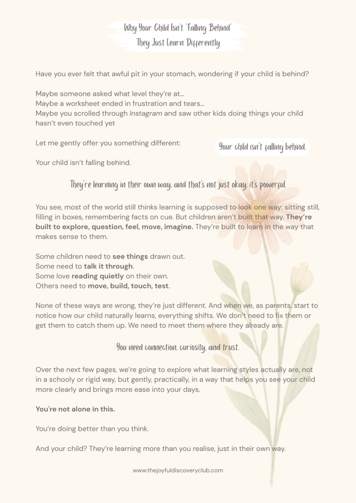 You’ll also receive 50% off resources, to use only when they feel right for your child, not as tasks to complete or boxes to tick, but as simple invitations for exploration when interest sparks.
