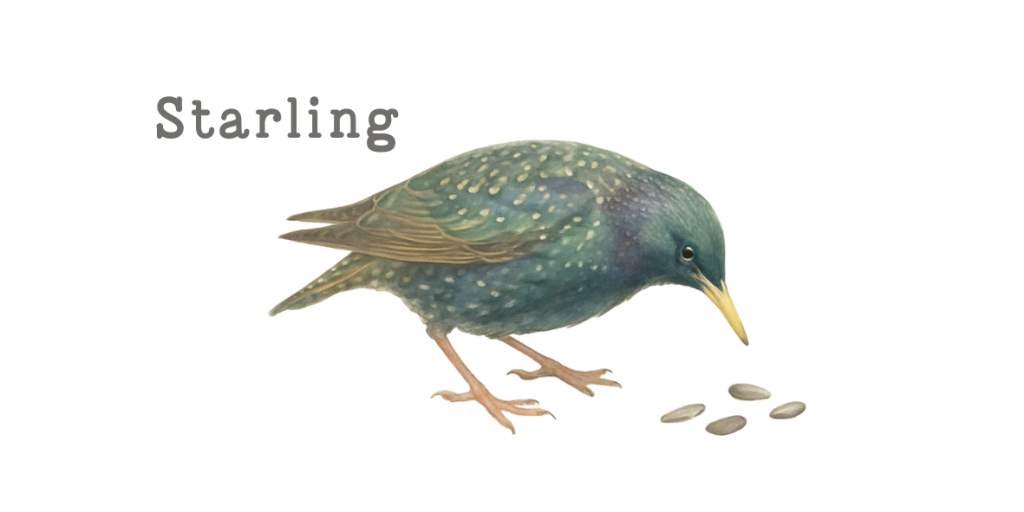 Starlings might look black at first glance, but in good light, their feathers show an iridescent mix of purples and greens. They are noisy, mimicking the sounds around them, and are often seen in large, bustling groups. Watch their energetic foraging on lawns and gardens.